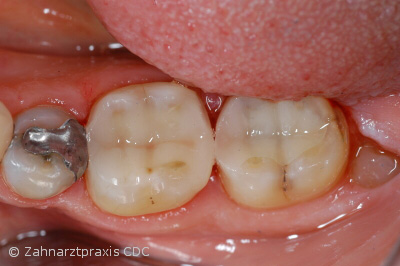Keramikfüllungen: Cerec, Unterkiefer rechts Vorbehandlung | Keramikfüllungen: Cerec, Unterkiefer rechts nach einsetzen |